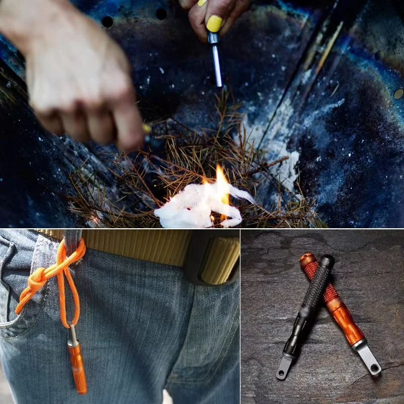 Este encendedor de pedernal de 2 piezas es una herramienta multifuncional para exteriores, perfecta para acampar y situaciones de emergencia.