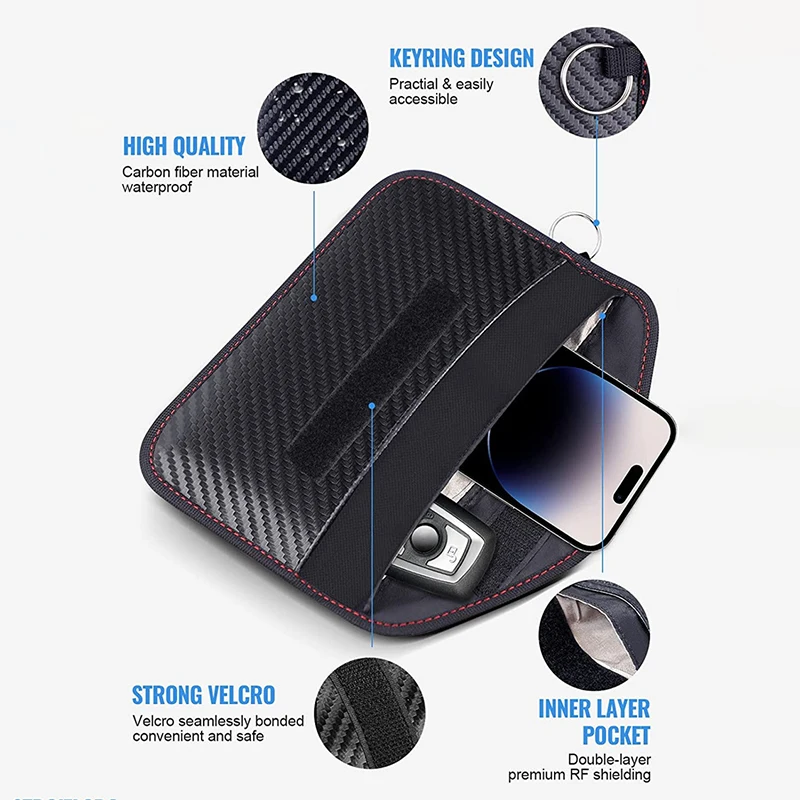 1.[ POR QUÉ PODRÍA NECESITAR UNA] Estas bolsas Faraday pueden proteger eficazmente su automóvil y su privacidad. Las bolsas Faraday de bloqueo de señal Oliman protegen sus pertenencias de señales EMF, RFID y de piratería informática. Impiden eficazmente el acceso remoto a sus llaveros de entrada sin llave o a su teléfono. Proteja sus datos personales y financieros evitando los escáneres RFID y evita que los lectores detecten la señal RFID de su tarjeta. 2. [USO MÚLTIPLE] También se puede usar para la protección contra la radiación de mujeres embarazadas, para guardar tarjetas de identificación, tarjetas bancarias, etc. Si no desea contestar el teléfono, puede colocarlo en el bolsillo interior y se desconectará; esta bolsa también puede bloquear la señal GPS del teléfono celular para evitar el rastreo y proteger su privacidad. 3. [CONVENIENTE Y PORTÁTIL] Dos capas internas de materiales de bloqueo de señal de blindaje, el exterior está hecho de fibra de carbono de primera calidad y se puede usar como una funda normal. Resistente al agua, bloquea llamadas, SMS, Wi-Fi, Bluetooth, 5G, RFID, señales NFC, etc. Diseño moderno y elegante. 4. [1 PAQUETE DE BOLSAS DE FIBRA DE CARBONO PARA FARADAY Y COMODIDAD] Protector tipo jaula de Faraday, fácil de transportar. Esta funda antihackeo puede contener teléfonos y llaveros de vehículos, protegiendo su automóvil y teléfonos de los hackers. Proteja su propiedad y privacidad. Incluye 1 bolsa de Faraday en cada paquete. PD: Esta funda antirrobo tiene un llavero para que puedas colgarla en tu bolso. 5. [GARANTÍA DE POR VIDA] Si tienes algún problema con la funda Faraday Lanpard, contáctanos para obtener un reembolso o un nuevo juego. ¡Garantía de satisfacción total! ¡Compra sin riesgos! Por favor, compruebe el modelo y el tamaño antes de comprar.
